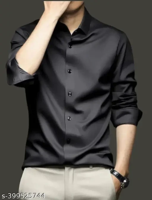 Name : Men Regular Fit Solid Spread Collar Casual Shirt for partywear- Black