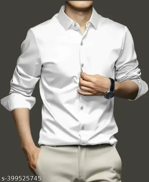 Name : Men Regular Fit Solid Spread Collar Casual Shirt for partywear - White